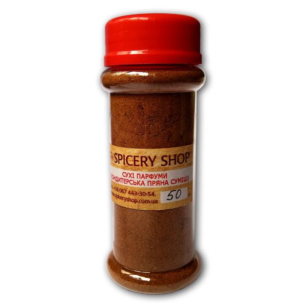 Кондитерская приправа "Сухие духи" – это классическая смесь пряностей для кондитерской выпечки. Она имеет глубоко сладкий пряный пряничный аромат, в котором все пряности сбалансированы так, что ни одна не выделяется из общего букета вкуса и аромата, а вместе они образуют очень гармоничное сочетание.